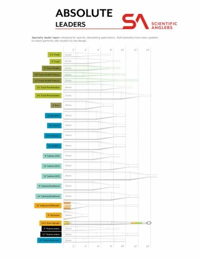 Absolute fluorocarbon leaders and tippet boast a 15% higher wet knot strength compared to our previous material and features incredible clarity and abrasion resistance.
